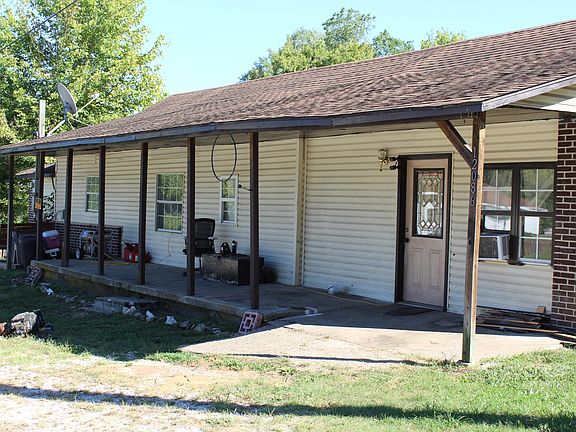 Investors check out this property! This is a 3 bed 2 bath home with a 4th room that could be office. The large open living area has vaulted ceilings and the home sits on 4 lots. The large covered porch could be a great space to sit and drink coffee. This home needs some TLC, but could be a great home. It is being sold AS IS.