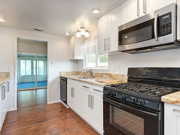 Highly Desirable Rancho Bernardo community of Seven Oaks and Everythings been done! Tastefully updated home with newer double pane windows, elegant laminate flooring, newer kitchen cabinets, custom granite counter tops, butcher block island, recessed lighting. Bathrooms have been updated with new fixtures, vanities, sinks, tile flooring, low flush toilets and lighting. Master bathroom shower has been completely remodeled. Both bedrooms have newer Stainmaster carpeting and ceiling fans. Enjoy a peek a boo view in the fenced yard with your own lemon tree and all plants are on drip irrigation. Newer Composite fence has been installed for a dog run/ bbq area with access from the office/kitchen. Formal living room has a gas fireplace with new custom tile surround. Large bright bonus room off formal living room boasts a new sliding glass door, double pane windows, two additional sliders, new carpeting, electric and cable. Exterior and interior of home has been totally repainted.