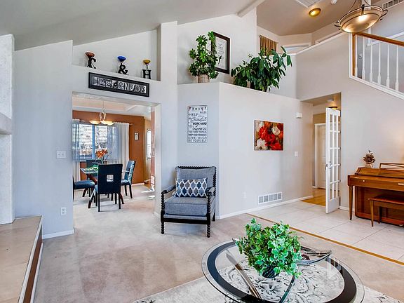 Wow! This spacious 4BR, 4Bath home is a dream come true. Gorgeous open and vaulted floor plan, expansive kitchen with lots of counter space, breakfast bar, as well as a kitchen nook! Formal dining room w/coved ceiling, and cozy living room w/gas fireplace. Full appliance package including front load washer/dryer. Master BR suite with walk in closet, and 2 more additional large BR's upstairs. The finished basement has 4th bedroom, a 3/4 bath as well as a den/theater room, and more space for play area or study! Amenities include: Central air conditioning, new carpet, newer roof, newer windows, custom paint, and hardwood floors! Huge backyard features a stamped concrete patio perfect for BBQ's, hot tub, and play set. Full sprinkler system ,and room for garden area. Unbeatable location with mountain views, and private yard. Foothills are literally just steps away! Walking distance to parks, shopping, schools, open space, trails, the Peak, The Edge, and Golf Course. See this one soon!