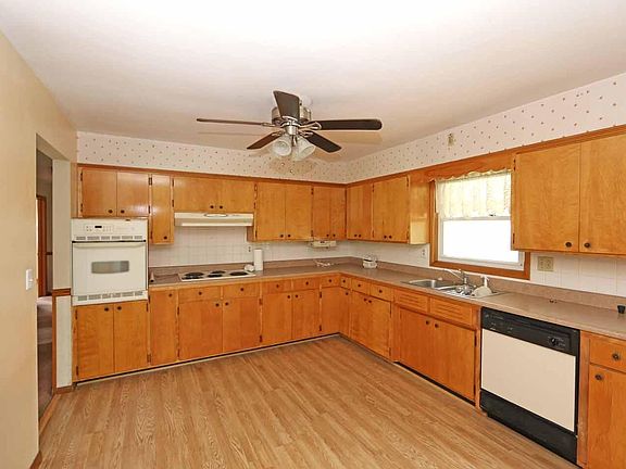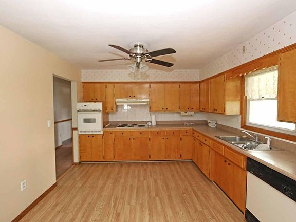 Country ranch situated on just under an acre of land, features include 3 bedrooms and a full main level bath/laundry combo, large living room with brick fireplace, spacious kitchen/dining combo, relaxing enclosed sun porch, walkout lower level with second living room and fireplace, attached garage plus a yard barn for added storage, propane forced air heat plus a wood burner, central air, quick possession available, priced to move fast at $200,000.