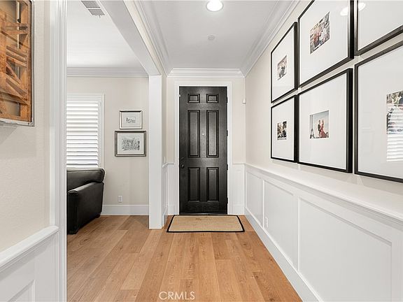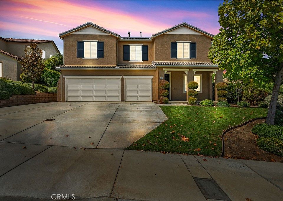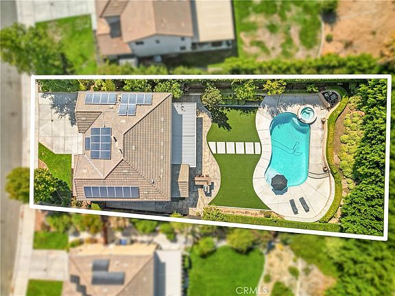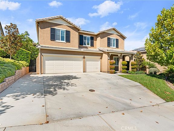 A sanctuary of style and luxury awaits in this 5-bedroom, 3-bathroom masterpiece spanning 2,903 square feet. Nestled on a fully landscaped 11,761 sqft lot in a prestigious neighborhood, this home blends modern elegance with timeless grace. Inside, expansive living areas boast high-end vinyl flooring, opulent 8-inch baseboards, and elegant window shutters. The first floor presents a comfortable bedroom and full bathroom, ideal for hosting guests. The living room, adorned with custom built-ins and a cozy fireplace, exudes sophistication, while classic wainscoting in the foyer adds a touch of traditional elegance. A chef's kitchen complete with a walk-in pantry and a chic island opens up to a vaulted dining area with backyard views, offering a seamless indoor-outdoor experience. Upstairs, a versatile loft area provides space adaptable for a family room, home office, or play area. The primary bedroom suite offers luxurious retreat elements like custom walk in closet, dual sinks, a soaking tub, and a walk-in shower, ensuring daily spa-like comfort. Step into a resort-style backyard designed for ultimate entertainment and relaxation. Features include an aluminum patio cover, stamped concrete, a custom-built BBQ with counter seating, and a stunning pool with a Baja shelf and waterfall spa. Fruit-bearing hass avocado, lime, orange and lemon trees enhance the lush landscaping. Emphasizing sustainability, the home is equipped with 26 solar panels and a level 2 electric vehicle charging station. The 3-car garage, with epoxy flooring, adds convenience and storage. Conveniently located near the 91 and 15 freeways this property balances suburban tranquility with urban accessibility, making it the ideal choice for those seeking a luxurious lifestyle amidst serene beauty.