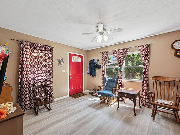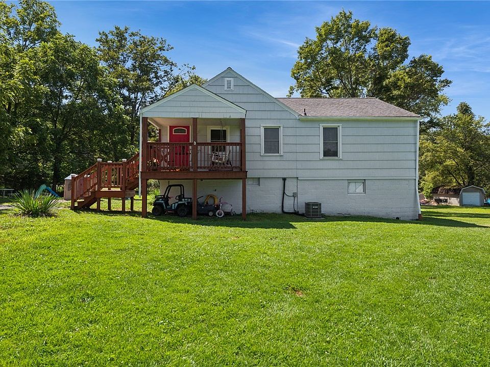 Welcome to this charming ranch home featuring a beautiful front porch that invites you inside. The spacious living room is filled with natural light and showcases easy-care vinyl flooring. Continue into the dining room with built-in storage and a generously sized kitchen offering ample countertop space. The main level includes three large bedrooms, a full bathroom, and an additional finished room with direct access to the backyard. The unfinished basement provides abundant storage and plenty of potential for future living space. Step outside to enjoy the expansive back deck overlooking a flat lot—perfect for relaxation or entertaining. With numerous major upgrades already completed, this home is ready for its next chapter!