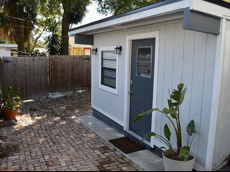 Rental unit in the rear of the primary home. Located in the heart of the Historic Old Northeast, this 1 bedroom 1 bathroom rental has all the charm! 10 minute walk to North Shore Beach Volleyball and Tennis Courts. 15 minute walk to Downtown St. Pete. Private entrance. Large outdoor shared patio. Free street parking.