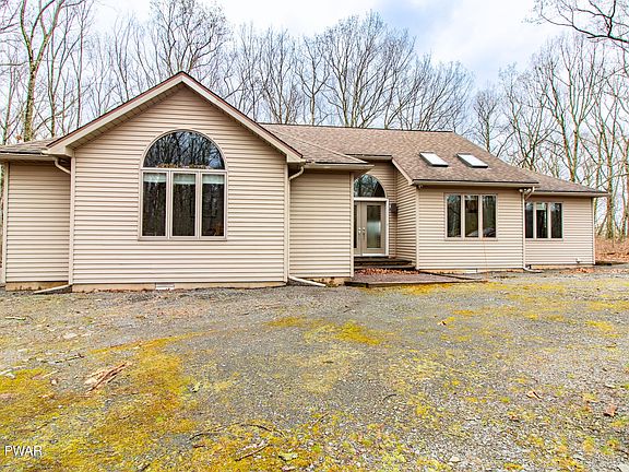 Looking for one floor living with acreage just minutes to Lake Wallenpaupack? Look no further! Don't miss your opportunity with this well-designed 3 bedroom, 2 1/2 bath custom built home located in a premiere neighborhood with private lake rights! Sitting on over 7 1/2 acres of wooded maintenance-free land over 2 parcels, you'll enjoy privacy with flexibility for future use. Stepping inside, you'll be greeted with an open floor plan featuring grand vaulted ceilings featuring large windows that dapples every inch of the home in natural light. Entertain the whole crew with this open space and access to a rear deck maximizing flexible floor space accommodating a dedicated dining area, or breakfast nook for smaller groups. Sprawl out and relax in the den just of the main room. Perfect for a library, rec room, office, or even playroom! Tired after a long day of playing on your choice TWO of Pa's finest lakes? Hit the hay in your luxurious primary ensuite fit for royalty featuring a walk-in closet, cathedral ceiling and semicircle window. Master all 4 seasons with efficient and clean propane heating in the winter and central A/C in the dog days of summer. Whether you are a first time buyer looking in the Wallenpaupack area school district, or a retiree looking for peace and tranquility with minimal steps this home can be the prefect fit for you. With just a few little updates, to make it your own, this gem will absolutely sparkle. A must-see to fully appreciate, make your appointment today!