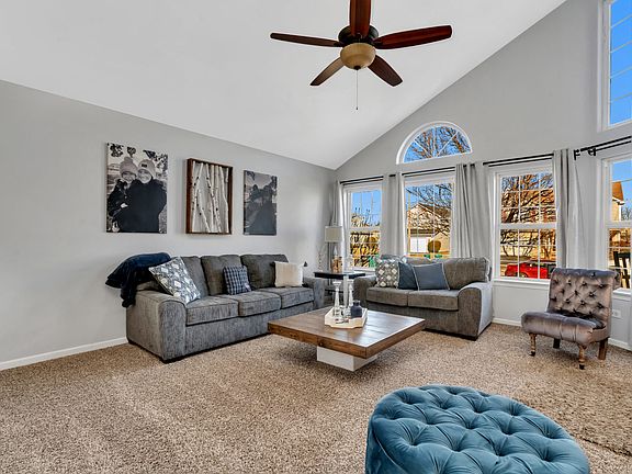 Welcome to this beautiful spacious home in the Eagle Ridge subdivision. This home offers just over 2400 square feet. As you enter, you are greeted by soaring ceilings and a warm welcome to what this home has to offer. The living room and dining room are the perfect spaces to relax or entertain. The kitchen has plenty of cabinet space, island, granite countertops, stainless steel appliances, pantry closet, room for your kitchen table, and an area perfect for a coffee bar or any other cocktails you desire. The kitchen is open to the family room which features a beautiful brick fireplace. There is a powder room on the main level along with a large laundry room/mudroom. The second level includes 3 bedrooms, 2 full bathrooms, and an extra room that would make a wonderful home office. The master bedroom has a vaulted ceiling, large walk-in closet and private master bathroom. The master bathroom has been updated and features a large shower, double sinks and separate vanity area. The basement was finished and is the perfect spot to entertain! Bring your games! There is also ample storage in the basement. The furnace and A/C were replaced in 2022. Oversized 2.5 car garage. Great backyard that backs to field which means no neighbors behind you! Large covered concrete patio with extension including a built in gas fire pit. Perfect for the upcoming seasons! There are parks and ponds in this lovely community. Are you ready to be the lucky new owner of this home? Schedule your showing today!