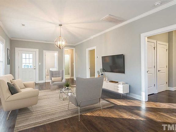 Completely renovated bungalow! New roof, HVAC, hot water heater, kitchen cabinets w/granite tops, new plumbing, new wiring, new light fixtures. Open living room/dining room w/gourmet kitchen. Owner suite addition along w/bath, half bath & laundry room. Hardwood floors throughout the living areas and in 2 bedrooms & carpet in owner suite. Tile in bathrooms. Fiber cement exterior. Over a quarter acre lot. Convenient to DPAC, Durham Bulls Ball Park & Duke/Hospital. This house is like a "new house"! Must see!