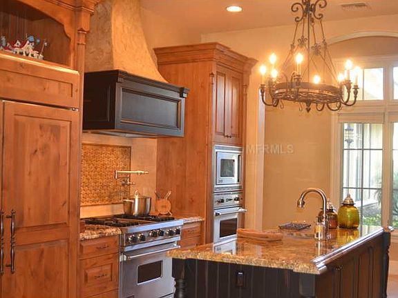 Celebration's mansion corridor on Aquila Loop only has 4 breathtaking properties behind gates and this property also has camera security system. Super luxurious First Floor Master Suite overlooking courtyard pool and tropical conservation-Built by Rial Jones this property is ceiling to flooring jaw dropping - 5 car garage is extremely hard to find in Celebration- Busby custom cabinetry- ensuite oversized secondary guest rooms- separate guest house- impressive courtyard stone fireplace - Trades accepted for other real estate, yachts, commercial property ect... Exquisite as well as Warm and inviting Mediterranean architecture with Castle like charm. Magnificent foyer with sweeping curved staircase opens to expansive cobblestone courtyards, fireplaces, pool, lanai, rearlawn in addition to library, dining room and bar. Chef's island kitchen with granite counters, custom Busby cabinetry and Viking appliances. Distressed ceiling exposed beams in family room, kitchen and dining room. Separate 2 story 2 bedroom/2 bath guest house connected by bridge. Master suite has fitness center with excercise equipment, sauna and private sitting room with bar opening to pool. Office, mudroom, laundry room and 5 car garage with circular drive. Bring your most discerning buyers to view this breathtaking mansion. No detail has been overlooked. Property is super functional and looks brand new! Model condition and ready for stress free closing.