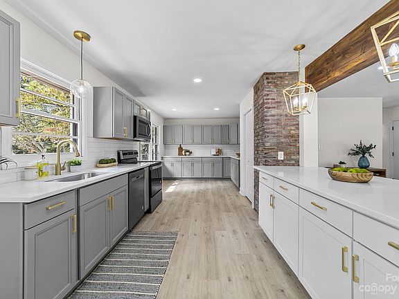Back on the market no fault of seller- no inspections or appraisal performed. This one is a showstopper! 3 bedroom, 2 bathroom renovated home in a quiet neighborhood that connects to the greenway and is conveniently located near restaurants, I-85, shopping and close to downtown. The open floor plan features a dream kitchen with an oversized island accented by a brick chimney, exposed wood wrapped beam, gorgeous pendant lights and open shelving. The spacious primary bedroom includes an en-suite with an impressive marble tiled shower, black/gold finishes and shiplap to complete the design. A partial basement provides plenty of storage and could easily be used for a game room, man cave, or more. Complete with a covered front porch, nice sized lot and detached garage for additional storage. 2019 HVAC, new water heater, newer roof, updated plumbing and electrical...this one is truly move-in ready!