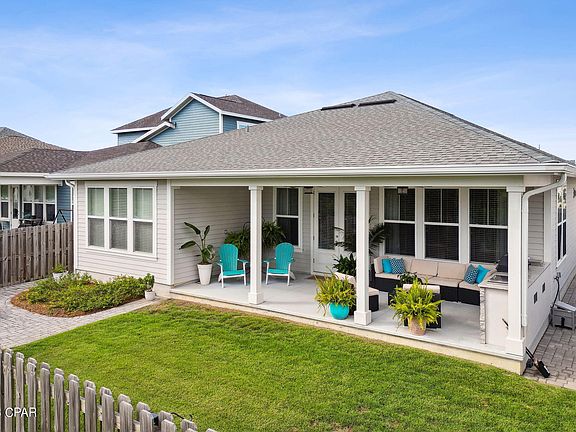 CURRENTLY UNDER CONTRACT, SELLER WILL CONSIDER BACKUP OFFERS. Welcome to SweetBay, the premier community in Panama City! This gorgeous Samuel Taylor home is the Anna Maria floor plan plus many added upgrades. Hardwood floors span the entry, kitchen, living and dining areas. The kitchen features quartz countertops, gas cooktop, cabinets galore, and a large island. French doors lead to the large custom paver patio with built-in grill, gas burner, mini fridge and cooler - the ultimate entertaining space. The master bedroom overlooks the private, fenced in backyard. The custom master bath features a large shower with dual showerheads, double vanity with quartz countertops. The large master closet is complete with custom built ins. The home is equipped with a tankless water heater and is pre-plumbed for a whole house water filtration system.