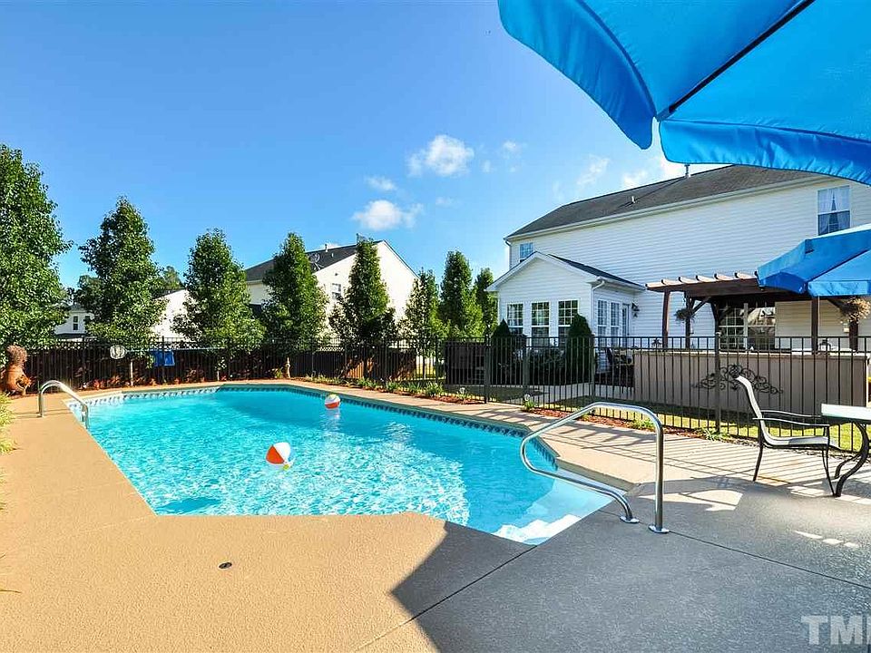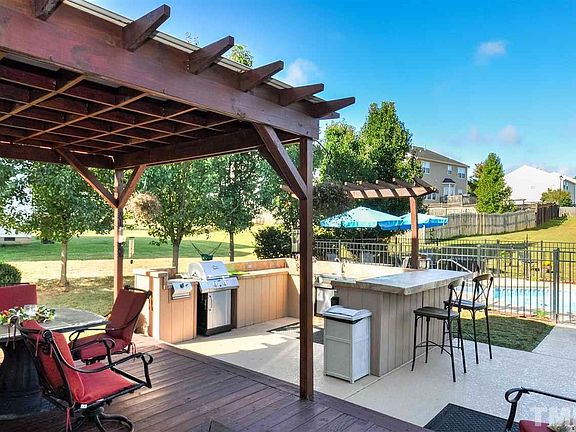 To hear a 24 hour description, call 800-983-7433 and enter #4475. Spacious 4 bedroom home with a fabulous in-ground salt water pool, hot tub, 2-tiered deck with arbor & outdoor kitchen area. Formal living/dining room, open kitchen offers an island/bar, tons of cabinets & stainless steel appliances. Light & bright sun room with a cathedral ceiling & walls of windows overlooking the pool. Family room features a gas log fireplace. Large master has a generous walk-in closet, private bath with garden tub & separate shower. Oversized secondary bedrooms, loft area-great for computer area. Convenient to Wake Forest shopping & dining. Neighborhood pool & playground