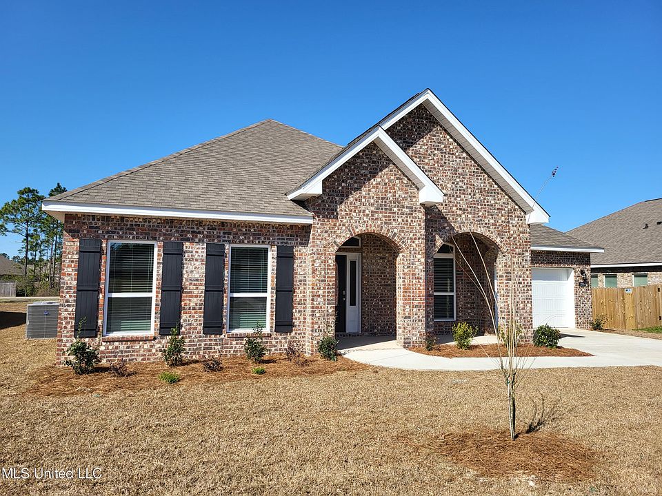 The ''McKenzie'' split floorplan with its spacious open living layout is perfect for entertaining. Features include double tray ceilings with crown molding, gourmet kitchen with island bar, designer soft close cabinets, quartz countertops, subway tile backsplash, farmhouse sink, formal dining, study, separate tile shower and garden tub in the primary suite. This energy efficient brick home includes a Smart Home package and warranties. Within minutes from all the Coast has to offer- beaches, casinos, shopping, military bases and more. *Home is under construction- completion late January 2024. Pictures are of another home, same floor plan. Options & colors will vary*