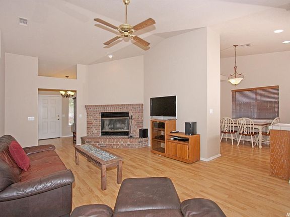 Don’t miss out on this lovely 3 Bedroom, 2 bath single-story ranch style home. Great schools and affordably priced within Creekview Ranch and Woodcreek High School’s boundaries! Vaulted ceilings and fresh interior paint throughout the home offer a bright and spacious experience. Newer laminate floors in the entry, kitchen, family room and hallways takes care of those high traffic area. The kitchen has been updated with newer stainless steel Frigidaire appliances and has a cozy breakfast area. Other features include oak cabinetry and tile counters in the kitchen and baths; tile flooring in the bathrooms; a beautiful brick fireplace with a piped gas stub; recessed lighting; ceiling fans in all bedrooms; and a master bedroom suite with a sliding glass door for immediate access to the back yard, a walk-in closet and dual sinks, skylight and a soak tub in the master bath. Outside you’ll find a low maintenance back yard with a covered concrete patio right off the family room. Great proximity to nearby shopping amenities, public transportation and Denio’s Market! NO HOA’s NO MELLO ROOS!