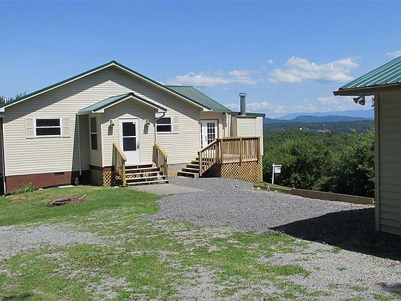 Stunning top of the world location with gorgeous mountain and lake views outside the city limits in the county. Situated just minutes from town, this one-level 2100+ square foot home with detached 3 car garage on 3.75 mostly wooded & private acres is move-in ready. Updated kitchen with new stainless appliances & granite counter tops. New flooring & paint throughout the home, as well as totally remodeled bathrooms, new decking, recent pressure washing and more. Detached 3-car garage features a finished 2-car finished section with HVAC. 2 year old home HVAC unit & 9 year old metal roof; water softener, water heater & washer/dryer 3yrs or less old. Lake and mountain views from every room except BR#2, bathrooms & hallways. Guest bedroom located on opposite side of home from the master suite.