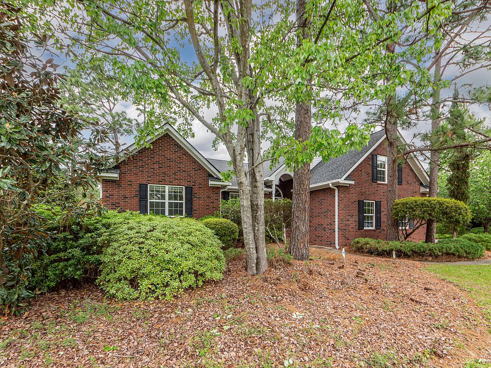 Back on Market through no fault of seller - Rare opportunity to purchase on highly desirable Congressional Blvd in Pine Forest Country Club. This all brick home is located on a large premium lot overlooking a picturesque pond. Master and guest bedroom downstairs, with dedicated study or formal sitting room. Open concept with large family room - vaulted ceiling and gas fireplace, dining room, and eat in kitchen. 3/4'' Oak hardwood flooring. Bonus room (3rd Bedroom) upstairs with adjoining half bath. Screened porch, patio, 2 car side entry garage. Well maintained with new roof shingles in 2017. Natural gas generator. House does need some updating and cosmetic improvements as reflected in the price. Being sold As Is subject to buyer's inspection. Amenities offered through The Clubat Pine Forest with membership opportunities.