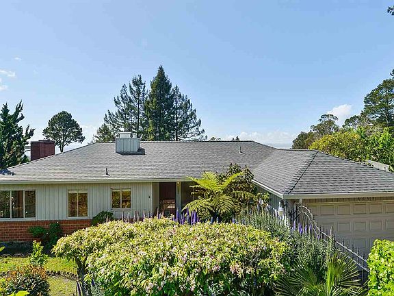 Mid-century set on ¼-acre lot overlooking the Bay. Lush garden setting with redwoods, raised beds and a greenhouse. The upstairs features 2 bedrooms and 2 bathrooms with hardwood floors, original wood paneling, a fireplace and an outdoor patio. The downstairs has 2 bedrooms and 1 bathroom with a family room and workshop. There is a 2-car garage with interior access, a newer roof, heater, water heater and some newer windows.