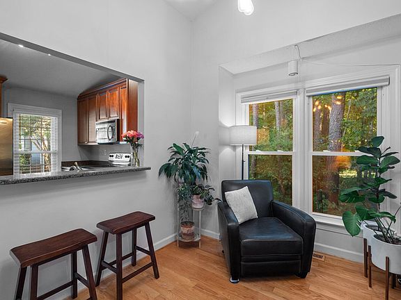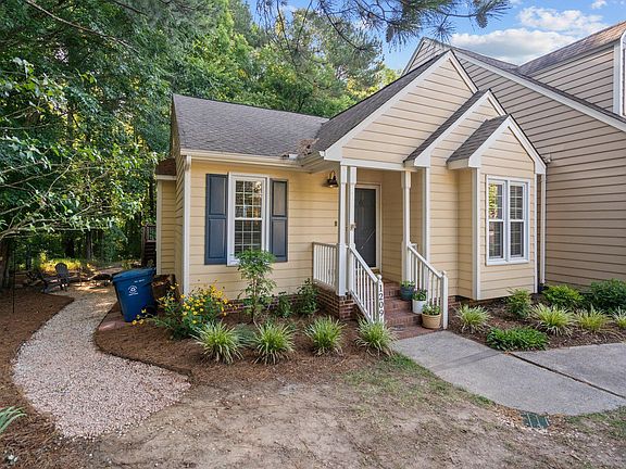Beautifully updated single-story townhome in the sought-after Downing Creek community. Conveniently located to UNC, and easy access to I-40. This end unit offers the perfect blend of tranquility and accessibility. It backs up to a private wooded area and Army Corp of Engineering land. This well-maintained home features a modern kitchen, updated bathrooms, and a large living room with a wood-burning fireplace. New windows, blinds, and a sliding glass door add to the home's appeal. There is also a dedicated office space, ideal for remote work or study. Move-in ready!