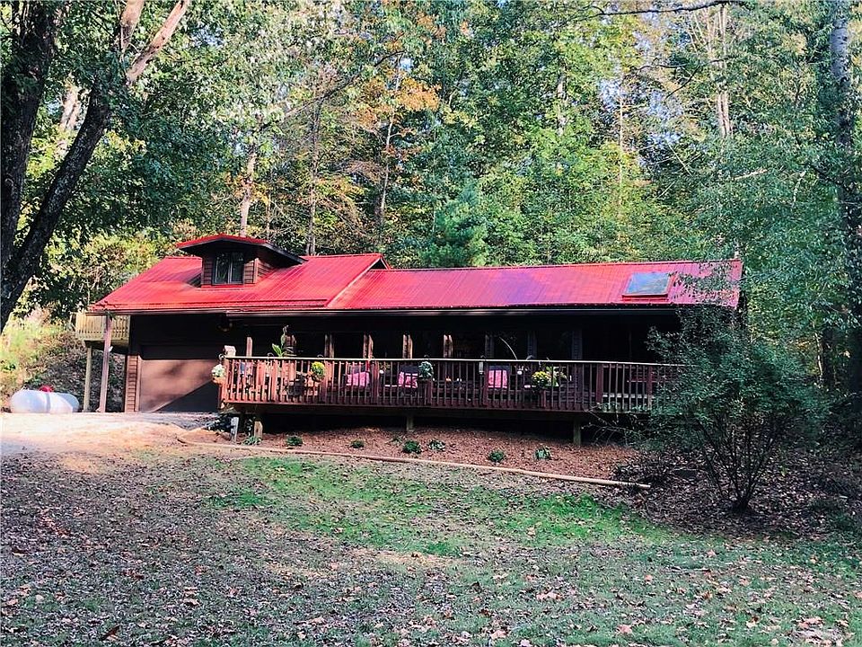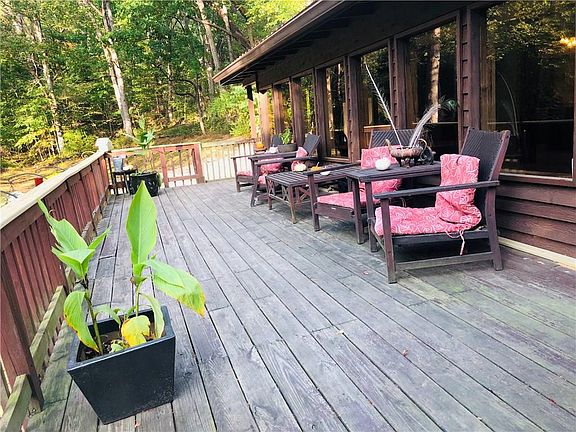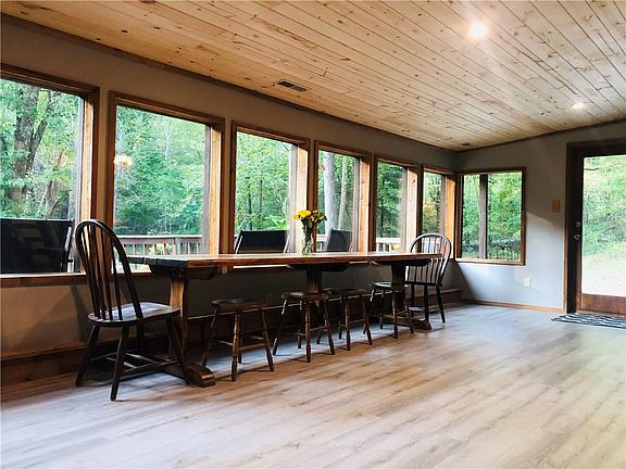 Unbelievable craftmanship, quality, & design fill this unique 3 bed 2 bath home on 1.5 acres mins from the village of Nashville. Raised tounge & groove ceilings, custom staircase, built-ins, barn doors, & rustic oak floors on the upper level. Beautiful wooded lot that includes a one of a kind chicken coop & large fenced garden. Huge wraparound front deck. Front sunroom/dining room that opens into a spacious kitchen with tons of cabinets & counter space, plus a center island w/ butcher block counter tops. Kitchen opens to a large living rm w/skylight & fireplace. Huge upper level Master w/private balcony, walk-in closets, fireplace, en suite bath that includes tiled shower w/bluetooth speaker. 2 car attached garage. A true Brown County GEM!!