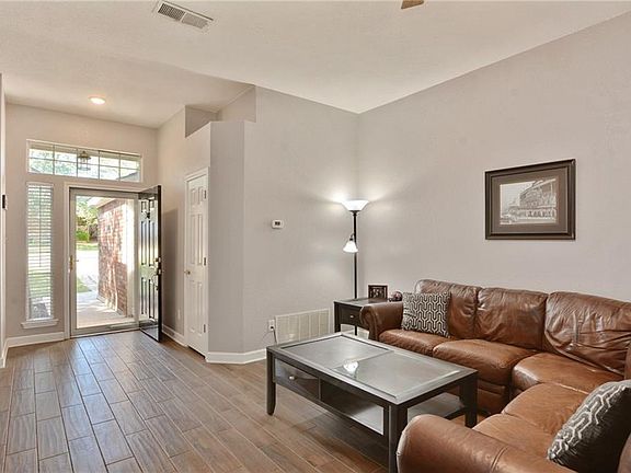 Move in ready home! 3 bd/2 bth, wood look tile throughout, high ceilings, fireplace & ceiling fans! Lighting and sink fixtures updated. Kitchen has granite countertops, pot drawers, and a spice drawer! Large cabinets also above washer and dryer. Exterior painted 2019. Pop up ceiling in primary bedrm. The backyard has large trees for shade and relaxing on the deck. Hose bibs on all 4 sides. Back door has built in blinds and storm door has a built in doggy door! Seller's Acclaimed Home Warranty on home.