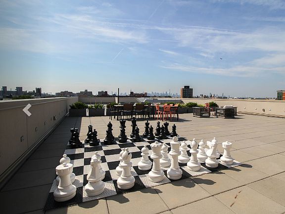 Top of line modern finishes. Living room kitchen combo great for entertaining. High ceilings. Floor to ceiling windows lets the sun shine through. Spa like bathrooms. Shared roof deck, billiard room, media room, doorman... Great location with tons of great cafes and night spots abound. JM and L lines close by. No Brokers Fee! First & Security. $3,100 monthly rent, 1 month free on 14 month lease- annualizes to $2,879.