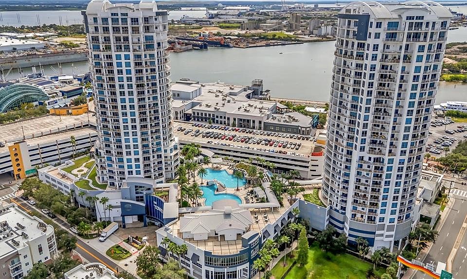 One or more photo(s) has been virtually staged. This stunning 2-bedroom, 2.5-bath condo on the 6th floor of The Towers of Channelside offers the perfect mix of space, style, and downtown convenience at an unbeatable value. Floor-to-ceiling windows fill the open living area with natural light and open onto a massive wrap-around balcony—nearly 250 sq ft of outdoor living space—with sweeping views of downtown Tampa and the cruise ships arriving and departing from the port. Inside, you’ll love the smart split-bedroom layout. The primary suite features dual vanities, a soaking tub, a walk-in shower, a large walk-in closet plus a second closet for extra storage. The guest suite includes its own full bath and walk-in closet and can easily double as a home office or flexible guest space, offering privacy and versatility. A convenient half bath off the foyer and a full laundry room with pantry add thoughtful function to the layout. This unit comes with two assigned garage parking spaces and a climate-controlled storage unit located safely on the 4th floor—a rare and highly sought-after perk in downtown living. At The Towers, every day feels like a getaway. Enjoy resort-style amenities including a rooftop pool and spa surrounded by tropical landscaping, two 5th-floor dog parks with wash stations, a resident clubhouse with lounge and bar, outdoor cabanas with grills, and 24/7 concierge and gated entry for peace of mind. Located just steps from Tampa’s best attractions—you’re a 2-minute walk to Sparkman Wharf, 3 minutes to the Riverwalk, 5 minutes to the Florida Aquarium, 7 minutes to Benchmark (Amalie) Arena, and less than a five minute walk to Water Street. This condo delivers unbeatable walkability and lifestyle access, all at a price well below nearby developments. Don’t miss your chance to own one of the best values in Channelside high-rise living—with front-row balcony views of Tampa’s skyline and cruise ships sailing by.