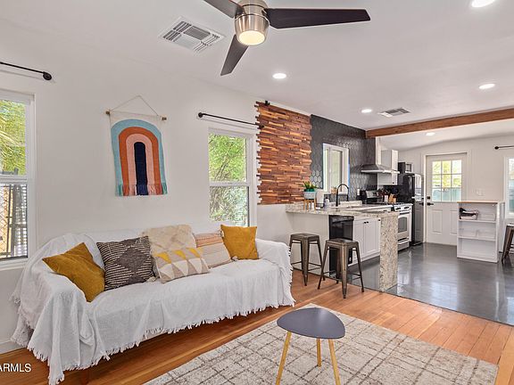 Take advantage of this fully-fenced residence with an excellent location in the Garfield neighborhood. The lot is zoned R-3, Residential Infill R-I District, ready for multifamily units. No HOA and not subject to design review and approval from Historic Preservation. Charming interior boasts an open layout filled with abundant natural and recessed lighting, illuminating every corner. Additional highlights include tall ceilings, soothing fresh paint, sleek wood flooring, and epoxy flooring. You'll love the captivating eat-in kitchen, adorned with wooden panel walls, honeycomb tile backsplash, stainless steel appliances, ample counter space, a convenient pantry, and breakfast bars. This property offers two decent sized bedrooms and a full bathroom. Separate laundry area enclosed. Conveniently located near downtown Phoenix with lots of must-see spots. Continue onto the spacious backyard, excellent for hosting memorable gatherings! Don't let this one get away!