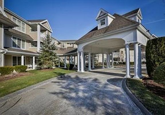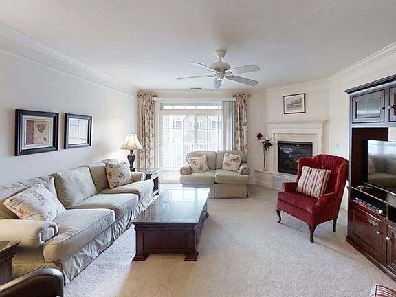 EMERALD COURT luxury 2nd floor garden style unit in the MAGNOLIA BUILDING an award-winning OVER 55+ COMMUNITY. Architecturally designed unit for easy living with numerous custom upgrades. Granite kitchen, breakfast bar opens to spacious living room with gas/log fireplace and sliders to covered balcony. Dining room, KINGSIZE MAIN BEDROOM, full bath and walk/in closet. Guest bedroom or an easy dual-purpose space. washer & dryer in unit and second full bath. Heated garage under with deeded parking space, owners' storage room, elevator, on site clubhouse, library and 24-hour exercise room. These impressive units are rare to come on the market so do not hesitate to make an appointment today. Carefree living and a comfortable lifestyle in a beautifully landscaped village only minutes to shopping and highway access. NO PETS ARE ALLOWED