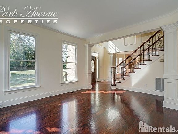 Fall in love with luxury in a lakeside community! A full-brick front welcomes you as you pull up to this gorgeous estate with acreage. A grand entry with wood tread stairs and deluxe railing invite you in. Enjoy all the little details that elevate a home from nice to spectacular! Decorative columns, wainscoting, a mural in the dining room, hardwoods throughout most of the home and a finished basement! The family room features a fireplace with stone masonry from hearth to ceiling! A huge bank of windows highlight the high ceilings and let in tons of light. Become a master chef in this elegant kitchen featuring granite counters, beautiful dark wood cabinets, a range with separate oven, recessed and pendent lighting, a tiled backsplash and stainless steel appliances including an of-the-moment french door refrigerator with lower drawer freezer. The master features an on-suite five piece bath with beautiful tile work and stylish lighting and cabinetry! A huge deck in the backyard provides the perfect spot to entertain in the outdoors with a lovely view of the expansive grassy grounds and surrounding trees. Located between Raleigh and Durham with easy access to I-540, this home offers the luxury and quiet you want with the convenience you need.