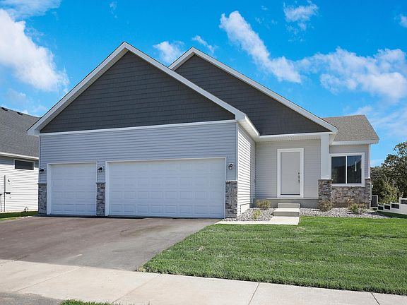 GREAT BUYER INCENTIVE WITH AS LOW AS 4.75% 30-YEAR FIXED RATED FINANCING available to qualified buyers!! This great RAMBLER in The Palmetto Development welcomes you through the front door to a nice entry way with closet. Open concept floor plan with main floor 9 foot ceilings, functional living, dining and kitchen with island. Owners suite with 3/4 bath with 2 bowls and walk in closet. The lower level is a LOOKOUT giving much natural light while having 2 bedrooms, full bath, laundry room and spacious family room. Photos are from same home built on another lot and may not represent actual colors and selections. **Some photos are virtually staged. Single family homes in this development have NO ASSOCIATION. Construction includes passive radon system, air exchanger, 1-2-10 MN equivalent home warranties, among many other items. Current estimated completion is first to middle of June-2023.