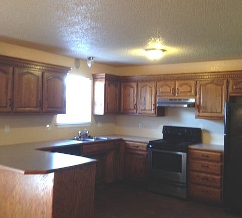 Open floor plan and very nicely done. Hardwood Floors and carpet. Master bath as well as hall bath. Bedrooms are large. Tenant responsible for all utilities and mowing one side of unit.