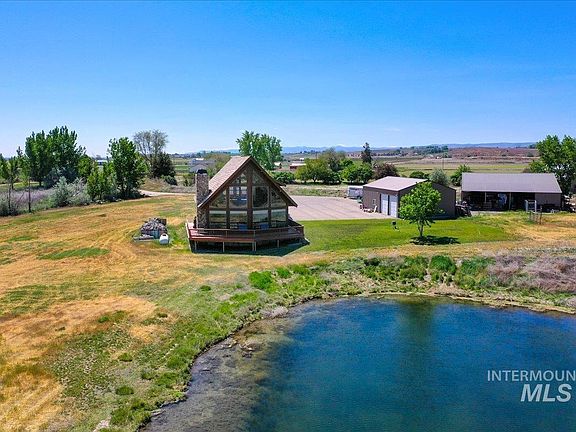 Fisherman's Dream! Incredibly unique, one of a kind property, located directly on the Snake River stretching out 456' along the shoreline. Launch your boat straight from your own boat ramp. The almost acre natural spring fed pond has it's own island & fish. Abundant wildlife coming & going! Enjoy beautiful views extending out to the horizon. Pasture stretches from the cozy home’s wrap around deck to the River front. Trees line the property giving you privacy and seclusion. The 'cabin' style home has floor to ceiling windows offering natural light & spectacular views, downstairs 2 roomy bedrooms, full bath w/large walk-in shower, natural oak floors, large kitchen w/quartz countertops, floor to ceiling river rock fireplace. Upstairs loft Master Bedroom has private ensuite bath w/jetted spa tub & dedicated tankless water heater. Never run out of hot water. Walk-in Closets in all bedrooms, ample storage throughout, laundry room & so much more.