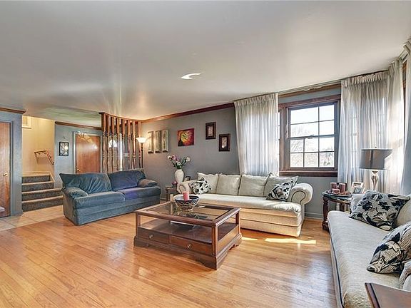 This conveniently located, move-in ready home has so much to offer! The front living room features a wood burning fireplace and hardwood floors. The hardwood continues into the dining area, which is open to the kitchen with plenty of cabinetry and a breakfast bar. A side porch off of the kitchen is a perfect spot to enjoy a cup of coffee or for entertaining. The main level also includes a full bath and a spacious family room with a feature brick wall and skylights. The family room leads to a large wooded backyard with a multi-level deck, fire pit, and storage shed. The upper level boasts a master bedroom with walk in closet!! Two more bedrooms and a full bath are also on this level. Downstairs there is a finished basement that is perfect for a home office, entertainment room, or playroom. It also includes a separate laundry area and half bath. This home is in a wonderful neighborhood and great location!