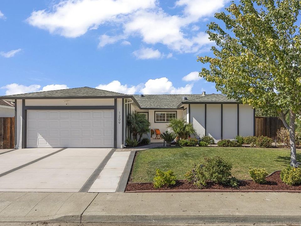 Beautifully renovated Milpitas home with over $200K in upgrades and top-rated schools! This single-story gem blends comfort with style. Thoughtfully maintained & move-in ready, the inviting layout features separate living & family rooms filled with natural light perfect for entertaining or everyday living. The family room highlights a vaulted open-beam ceiling & cozy wood-burning fireplace. Oak hardwood floors run throughout, with tile in the kitchen & bathrooms. Recent improvements include fresh interior/exterior paint, a brand-new roof & a new concrete driveway with pavers. The updated kitchen is a chefs dream with quartz countertops, custom cabinetry, ample storage & stainless steel appliances. The spacious primary suite offers an upgraded en suite with double vanity plus dual closets, including a walk-in. The renovated hall bath boasts a spa tub with jets. Step outside to a serene backyard with various fruit trees, ideal for relaxing & entertaining. Additional highlights: dual-pane windows, custom closets with organizers, skylights, updated garage, automatic sprinklers & drip irrigation system. Ideal location minutes from John Sinnott Elementary & Russell Middle, Great Mall, BART, Lightrail, Trader Joes, Costco, parks, and major highways (680/880/237).