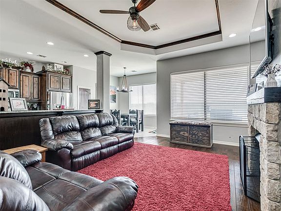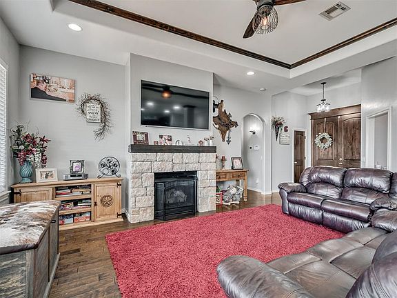 Check out this well-kept 3-bedroom, 2-bath home, plus an office that’s got a great mix of style and comfort located in Haydens Pl Addition. Inside, you’ll find hardwood floors and an open-concept layout that makes the space feel warm and inviting. The kitchen is the centerpiece, with a big island, stainless steel appliances, a pantry, and sleek granite countertops—ideal for whipping up meals or just hanging out. The oversized master suite is a spacious haven with a luxurious on suite bath featuring a walk-in shower, double sinks, soaking tub, and a huge closet with a built-in dresser and lots of storage. In the garage you'll find an in-ground storm shelter. The covered patio is perfect for kicking back and enjoying some quiet time or entertaining. Don’t miss your chance to make it yours!