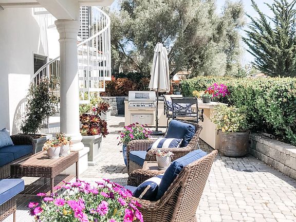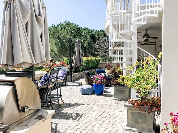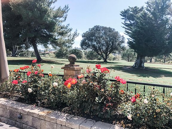 Enter the gated and esteemed San Luis Obispo Country Club estates to find this updated Spanish-style home located on the 12th fairway with recently installed solar panels (so save $300-400 a month with no energy bills)! Available furnished as well if requested at $7700. We are willing to remove bunk beds in upper level bedroom to furnish as standard Queen bedroom set if preferred. Boasting vaulted ceilings, an open floor plan layout, two primary suites (one on each level), abundant guest bedrooms, a chef's dream kitchen with butler's pantry, and beautiful outdoor living spaces and FireMagic kitchen. The first floor features the open floor plan layout with dining area, living room with fireplace, plantation shutters and spacious kitchen with bar, island, double Wolf oven, Sub-Zero refrigerator, large walk-in pantry and a stunning glass-enclosed temperature controlled wine cellars holding 330 bottles. Solar panels (With A/C and 2 Electric Vehicles, we have had no electric charges). No weekly water service with built in whole house water filtration system (most homes require a water softening service). Flowing off the entry also sits a bonus room, lower level master en suite, two guest bedrooms, guest bathroom, and spacious laundry room with built-ins and storage. Upstairs you will find the main master suite with two closets, exquisitely updated bathroom with glass-enclosed walk-in shower, soaking tub, and dual vanities. Additionally on the second level is a guest bedroom with en suite bathroom and partially covered terrace with gas fireplace sitting area overlooking the golf course and nearby rolling vineyard hills. Enjoy outdoor living all year round with the fully-equipped outdoor kitchen and BBQ, spa, patio space, grassy area, and close proximity to the SLO Country Club's clubhouse and amenities. Conveniently located in the heart of Edna Valley wine country, while only a short stroll to Los Ranchos Elementary School- one of the highest rated public elementary schools in the state. It is a quick 4 minute drive to the SLO County regional airport and nearby lifestyle necessities. Additional Details: Outdoor Space Backyard- The backyard is fully fenced and has a large outdoor seating area for 10 people, there is a full outdoor kitchen with granite counter tops and a top of the line FIRE MASTER grill, warming ovens, stove tops, etc. There is a 4 person granite counter top bar overlooking the golf course. Frontgate wrought iron barstools are provided/included for the bar. Backyard landscaping includes a variety of succulents, beautiful white and red rose bushes along the short fence bordering the golf course, as well as day lilies and bougavillas. There is a Meyer lemon trees, Bears lime tree, multiple tangelo & mandarin trees, and an incredible Golden apple tree that produces +200 delicious apples each Fall!! Outdoor Space Front Yard- Fully landscaped & landlords provide bi-weekly landscape service. Everything is growing is setup on a sprinkler system. Large palm trees and grass are enjoyed in the front yard along with beautiful rose bushes & tangerine trees along side wall near front door. A variety of plant and flowers are blooming throughout the year. Outdoor Space Upstairs- And that's just on the ground level! On the upper deck you have a show stopping Tuscan style deck that includes ceiling fans, lights, an outdoor in-wall fireplace and huge TV along with cozy chairs for late night movies or sunset cocktails. Entire house has built-in speakers in each room and outdoors for ultimate entertaining. House is also wired by the top security company: MACE and has all entry points set up like windows, sliders, etc. Tenant responsible for service ($150 a year for full monitoring which also rings right to police station if you don't answer right away if alarm is triggered). Inside the House: Master Suite Upper Level- The master suite has an enormous shower that is 12 feet x 8 ft. Total luxury with 5 shower heads, heated floors and other amenities. The master dual vanities have "hidden medicine cabinet" shelves under the mirrors along with hidden outlets to create the ultimate sleek look. The floors in the entire bathroom are heated and the bathroom is finished with Venetian plaster walls boasting extreme elegance. There are two master suite closets with built in's and luxurious closet space. Also on the upper level is a large en-suite second bedroom with another private balcony. En-suite is a full sized tub and shower and opens into a large cedar planked closet. Lower Level: Kitchen- The gourmet kitchen has Sub Z 4' fridge, a Wolf double oven and 6 burner range, also a Wolf warming oven- along with another full sized stainless fridge/freezer in the wine room/large walk in pantry. 6-8 person breakfast bar and butlers pantry with another smaller wine fridge underneath. All rooms have lighting on dimmer switches. House has AC and on the Nest. Main level master bedroom has heated floors. Indoor electric fireplace in the family room. Lower level has a very large second level master with en-suite and private patio. This part of the house could make a perfect casita or mother-in-law unit and also has it's own private entrance if you choose. That room flows into a large room that we use as our "media" room. So again, in addition to the 2nd master bedroom and media room (2 separate spaces here) is a living room and family room, kitchen. Plus there is a large laundry/craft room on this level with abundant built ins for storage. There is a another room that we use as a guest bedroom but is considered a "den" because it doesn't have a closet. But we treat it as bedroom so it makes it a 5 bedroom home in our mind. Then finally there is another full sized bedroom with beautiful views looking to the course. There is also a very large 12' x 8' storage closet under the stairs in addition to the multiple hanging shelves/storage areas we made in the garage and upper garage crawl space in the garage. Pet friendly wi