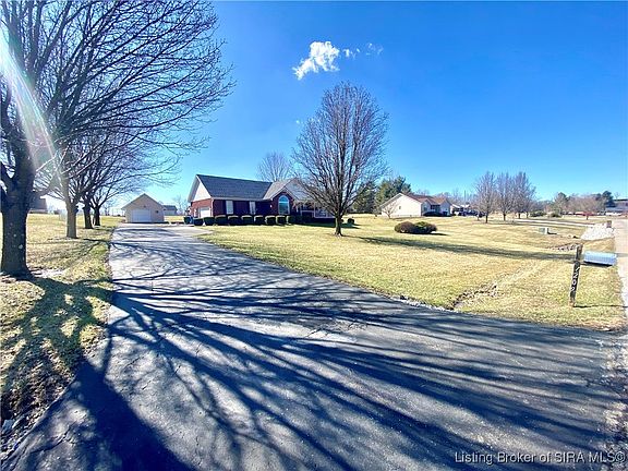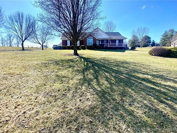 Welcome home to this sprawling all brick ranch on an acre in the well sought after Harvest Ridge subdivision in Memphis, Indiana. This home is just 10 to 15 minutes north of Louisville, Kentucky and minutes away from all major shopping schools and major interstates and an hour south of Indianapolis. This home features a ranch style floor plan with all the bedrooms upstairs and full kitchen with tons of cabinets and counterspace. Large utility room with washer and dryer area. Large two car garage that has extra room for storage and shelving. Great open living room with vaulted ceilings and spacious bedrooms on the first floor. The owner suite has private bathroom and plenty of space for large furniture. Make your way down to the basement and notice a full basement with lots of finished areas. Gaming room for a pool table and also a fourth bedroom that does not have an egress window. Extra storage space in the basement with large safe currently empty in place. Take a look outside to see a covered front porch perfect for relaxing, and a deck for entertaining and a large backyard for pets or children to roam. Large exterior loft shed and large parking area for extra vehicles. USDA Rural housing area to those who qualify. Sq ft approximate. Call to see this great home today!