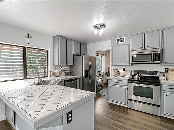 - Features: Counter - Tile, Dishwasher, Garbage Disposal, Microwave, Range/Oven Free Standing, Refrigerator, Self-Cleaning Oven