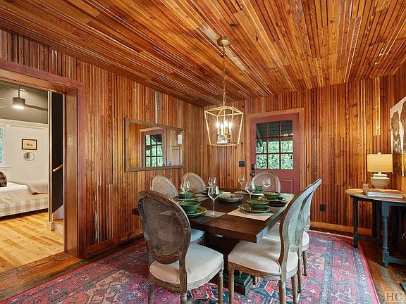 "Hickory Hill '' is the quintessential Highlands lake cottage having been carefully renovated to preserve its 1940's roots and charm with milled beadboard walls/ceilings, stone fireplace and patina'd wood floors. This lake view cottage is just steps away from Mirror Lake and within walking distance to Highland's town center. From the private courtyard, you enter into the foyer/dining area that invitingly flows into the main living area which features a vaulted ceiling and original stone fireplace. The cozy kitchen has been updated to preserve its vintage charm while providing all of the modern amenities you need. Hickory Hill features two (2) large lower level bedrooms with updated ensuite bathrooms and a large upper level sleeping loft. A screened porch and an open grilling deck along the back of the house provide several options from which to enjoy the view of Mirror Lake. This home is being offered exquisitely furnished and appointed for turn-key use. Hickory Hill offers potential use and enjoyment as a private mountain retreat and/or as an income property. Hickory Hill is an active income property with exceptional guest reviews and strong revenue performance. Rental history, rates, guest reviews and a list of minor furnishing exclusions are available upon request.