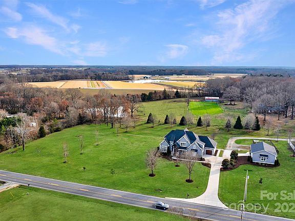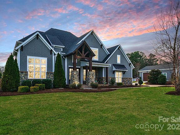 Beautifully crafted, designed home features an open floor plan w/imposing 2-story foyer, executive office, & spacious great room w/fireplace & coffered ceiling. The gourmet kitchen boasts a quartz island, custom cabinetry, top-tier appliances, & hidden walk-in pantry/scullery/laundry suite w/2nd dishwasher. A curved wet bar w/beverage cooler & built-in buffet enhances the entertainment appeal. The luxurious primary bathroom offers a spa-like retreat w/oversized walk-in shower, freestanding soaking tub, dual vanities w/quartz tops, and large walk-in closet w/custom built-ins. Indoor/outdoor living shines w/an all-seasons room, outdoor kitchen, & large patio w/motorized awning. The 3.86 acres provides ample space for animals. A 3-car garage w/oversized vehicle bay & state-of-the-art, climate-controlled workshop w/12.5’ ceilings & dedicated power supply adds functionality. Convenient location near I-485/Charlotte offers luxury, comfort, practicality, & urban accessibility.