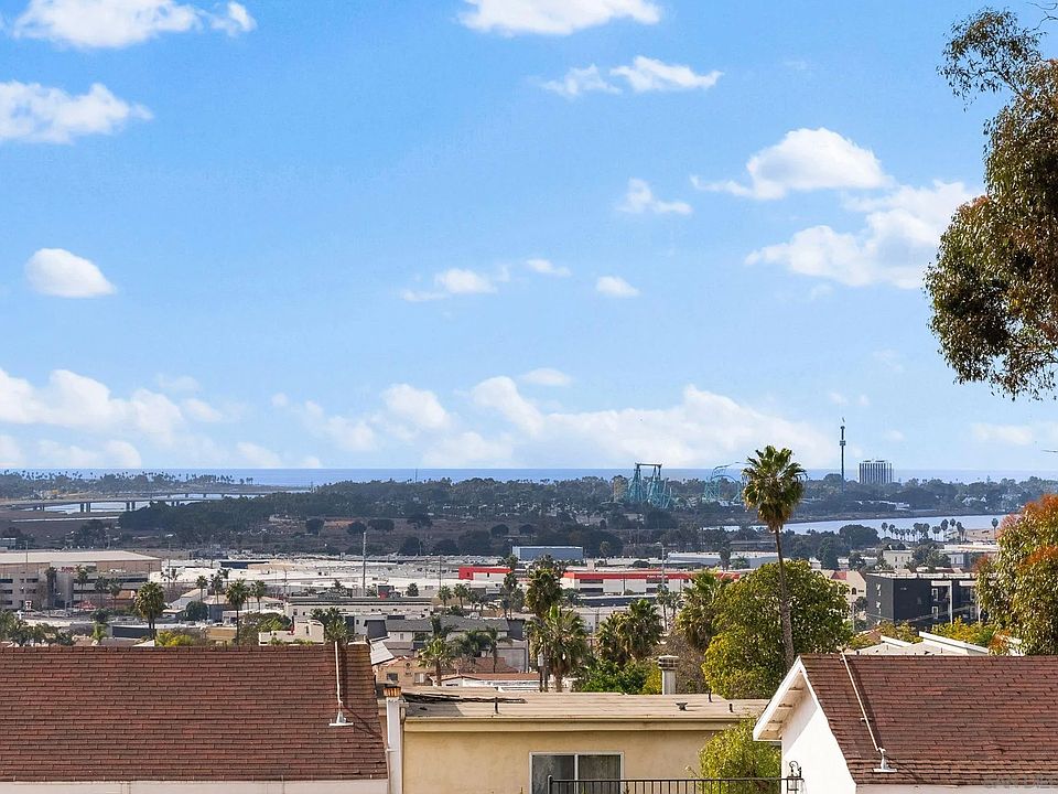 Remodeled quiet top-floor unit with Ocean & Bay views including SeaWorld fireworks! West-facing patio ideal for enjoying stunning sunsets & ocean breezes. $100k remodel includes; kitchen, bathrooms, paint, vinyl floors & 3 A/C units. The well-designed layout includes two spacious bedrooms that are separated by the bathrooms for added privacy. Recently appraised at $685k! Two side-by-side parking spaces. Exciting news—the HOA is voting on allowing in-unit laundry! No shared walls!