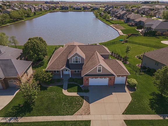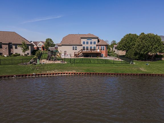 Location, location location!! Gorgeous 1.5 story home on Sapphire Lake. Open, bright and spacious. Natural light and stunning lake views. 5 bedrooms, 3.5 bathrooms. Main level master suite. Large open kitchen with maple cabinets, and granite countertops. Two story family room, with floor to ceiling windows highlighting the magnificent view. Large finished basement with theater room, family room, and 5th bedroom and full bathroom. New custom patio in 2020 with built in outdoor kitchen and fire pit. Recent updates include, but are not limited to: New landscaping patio 2020 (roughly $60,000 project), fresh paint throughout most of the home 2021, newer carpet upstairs, in the basement, and in the master bedroom 2021, new sump pump with water backup 21, newer seawall 2019, new irrigation pump 2020, newer fireplace blower 2021, and radon mitigation system installed.