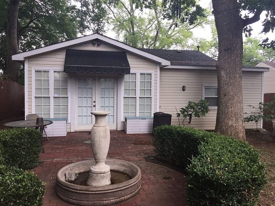 1/2 first full month rent move in special Skip paying a full deposit with Onbligo Security Deposit Alternative, call for details. Quaint two bedroom cottage in the heart of the Historic/ Medical District. This beautifully remodeled 2 bed 1 bath home is nestled in mature trees and gorgeous landscaping overlooking the beauty of Maple Hill Cemetery. Nature can be enjoyed in the privacy fenced in back yard. Entry is in the rear where you are welcomed by pergola style covered parking. A wood and wrought iron gate invites you in to the courtyard complete with a fountain. The quaint awning covered french doors open to a sun room that leads to the updated and renovated kitchen with modern maple cabinets, travertine marble floors, countertops and backsplash. The kitchen is open and can adequately accommodate an island or kitchen table. The hardwood floors have been refinished and crown molding has been added throughout the home. The bath has black granite tile floors and shower surround. The back drop for the pedal sink is freshly painted, crisp white beadboard. There is a separate space for laundry and storage. This home has it all, the look of a bygone era with all of the ease of modern amenities.
