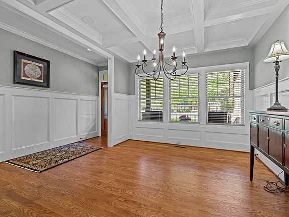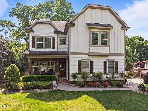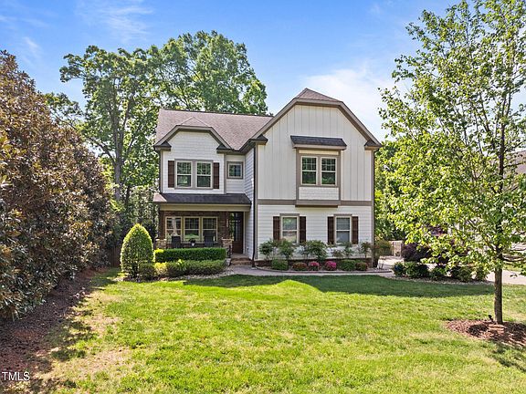First showings Friday 4/25 beginning at 5p. This elegant home blends sophisticated design with everyday comfort, offering 4 bedrooms, 2.5 bathrooms, and 2,684 square feet of well-appointed living space on almost ½ an acre. The home features a fully encapsulated crawlspace, covered front porch, 9-foot ceilings, 8-foot doors and site-finished hardwood floors, complemented by extensive crown molding that adds a touch of refinement throughout. The formal dining room, with its deep coffered ceiling, and the wainscot foyer make a striking first impression. The open-concept living space is perfect for both relaxation and entertainment, highlighted by a gas log stone fireplace with custom mantel and surround sound that extends throughout the downstairs and screened porch. The chef's kitchen is a true focal point, equipped with stainless steel appliances, granite countertops, under-cabinet lighting, and a beautiful eat-at island. A butler's pantry with a built-in wine rack provides additional storage and elegance. The primary suite offers a luxurious retreat with a tray ceiling, a soaking tub, dual vanities, and a large shower with a frameless glass enclosure. Two additional bedrooms share a well-appointed bath with a frameless glass shower, and a spacious bonus room offers endless possibilities for a game room, home theater, or craft room. If that wasn't enough, the additional nearly 1,000 square feet of unfinished attic space is already plumbed and offers incredible potential for expansion. Step outside to enjoy four fantastic outdoor spaces that offer plenty of room for gatherings or peaceful moments alone. A custom screened porch with built-in sound system, an expansive open-air deck, a large hard-scape patio with a fire pit, and a private, fenced backyard surrounded by mature trees are yours to enjoy. Additional highlights include a side-load garage, a drop zone near the garage, and energy-efficient features such as a tankless gas water heater and new evaporator coil in upstairs HVAC unit. You're just minutes from Fenton, Crossroads, Cary Towne Center, Harris Teeter, Downtown Cary and numerous top-rated dining options. With no HOA, this home offers both luxury and convenience, making it an exceptional place to call home. Call to book your appointment today!