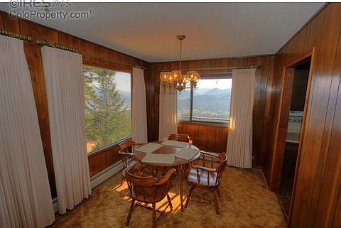 Quiet location with top of the world views. Stunning view of Lake Estes perfect for the fireworks! Ranch style home, with large wraparound deck, 2 Garages one attached and on detached, could be the perfect shop area. Main level with master suite, large living room with rock fireplace, surrounded by windows to capture the views and wildlife. Lower level has family room with walk out patio. Peace and quiet await the new home owner!