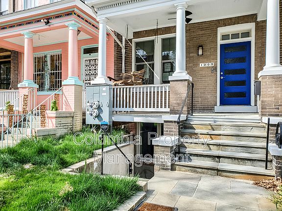 This gorgeous renovation features luxury finishes and quality workmanship throughout. The apartment was designed to add maximum natural light with large windows, high ceilings, LED lighting and exterior doors in both bedrooms. There is outdoor space in both the front of the house and the rear for a small table and chairs or just to hang outside with coffee, reading, or working on a laptop. The open plan kitchen features granite countertops, bar seating on the peninsula, stainless steel appliances, and plenty of cabinet space. A French door, freezer bottom refrigerator is an extra bonus for an apartment! Extra beverage fridge under the bar for quick serving from the living room. Bathrooms have marble vanities and stand up showers with rainfall shower heads. Enjoy an in-unit laundry closet plus the convenience of having both a front and rear entrance. Wonderful details abound in this apartment: touch on/touch off kitchen faucet, light colored wood grain style ceramic tile floors, a sprinkler system for fire suppression, Ring system, floodlights in the front and rear, pre-wired TV and Internet boxes on the walls with power, COAX and CAT6 wiring. You can even shut off the rear of the apartment with a pocket door to create a primary suite. BR sizes are approx. 9x11 and 10x12. Tenant pays electric and telecommunications. Water account will be handled by owner and a regular charge will be assessed based on occupancy and usage. No cats allowed. Small dogs are allowed on a case-by-case basis with pet screening, pet addendum and non-refundable pet fee. 1209 Lamont St NW has a Walk Score of 96 out of 100. This means this location is a Walkers Paradise so daily errands do not require a car. Living here, you will only be an eight minute walk to the Columbia Heights Metrorail Station (Green Line) and close to major bus lines on 11th, 13th and 14th Streets. Nearby parks include 11th and Bark Dog Park, 11th and Monroe Park, Columbia Heights Water Park. Only one half block from the 11th St NW 'Hip Strip' with lots of restaurants and night life options. It's also just a few blocks from everything on 14th St, including the Target, two grocery stores, a gym, cafes, and countless dining options. All residents are enrolled in the Resident Benefits Package (RBP) for an additional $45.95/month and includes: renters insurance, move-in concierge service for utility and home services, air filter delivery to your door, our best-in-class resident rewards program, credit building to help boost your credit score, $1Million policy for identity protection and much more! Details upon application. For a walk-through video and to see our available rentals, visit our website. This rental is professionally managed by Columbia Property Management.