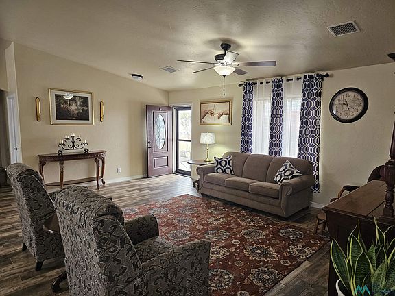 Great recently built Luna Construction house in Deming NM. Large open floor plan, great for entertaining and family gatherings. 3 bedrooms, 2 baths, large dining area, open kitchen, all appliances convey, laundry room coming off the 2 car garage. Main bedroom has roomy walk-in shower w/seat and a closet room., tankless hot water heater. Outlets in soffits for outdoor lighting, covered patio, Oak tree in rear, Magnolia in front and block wall rear yard. Easy access to Downtown Deming for shopping, hospital, grocers, schools and the I-10 to Las Cruces, Lordsburg and the Airport at El Paso, Texas. Silver City is just to the north and Columbus, NM is just to the south. Location... yep! we have it.