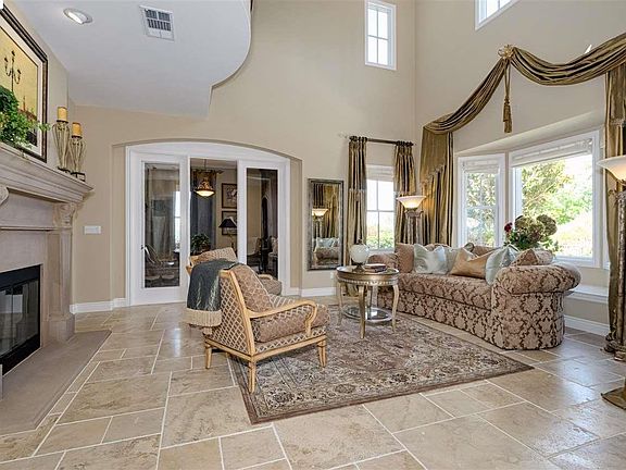 Former model home with top of the line upgrades from the builder. Includes 720+/-sf. Guest House. Home can be sold Fully Furnished (Over $350,000 value) Designed by J.Hettinger. 5BD + Master Retreat/Office 4.5 BA 4,755sf. on a 1/2 Acre Lot. Open floor plan with top of the line upgrades and finishes. The inviting entry offers travertine tile with custom inlay opening to the formal living room with vaulted ceilings. Main level offers a guest suite with full bathroom & a private office with custom built in cabinets. Upstairs offers a Jack & Jill bedroom/bathroom set up. Master suite offers a large seating area around fireplace, top of the line amenities in bath, walk-in closet & retreat/office/gym off master bedroom. Guest House offers a large living room, full kitchen and private bedroom/bath. The back yard offers a sparkling pool with covered patio, large lawn and incredible views on a private lot.