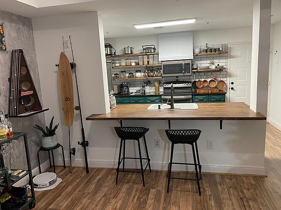 Bright open floor plan condo on 2nd floor with 2 bed/2 full bath in the heart of downtown Abacoa. This split floor plans features high ceilings, walk in shower, and oversized patio/balcony (approx 48sq-ft covered and 190sq-ft open)! Laminate wood flooring throughout with tile installed in bathrooms and kitchen. The kitchen includes a beautiful open floor plan with a beautiful extended butcher block countertop. Kitchen also includes open shelving concept with pullout drawers installed in cabinets to allow for more storage. Guest bedroom includes walk in closet with added shoe storage. Master bedroom also upgraded with additional storage. Unit comes with standup washer / dryer, along with patio storage and privacy fence. Walk downstairs to restaurants, shops, events, live music and Minor League and Spring Training baseball games at Roger Dean Stadium. The community offers a clubhouse, gym, and pool. The Abacoa community park features 24 acres of outdoor basketball courts, skate park, outdoor hockey rinks, playgrounds and tennis courts. Zoned for Jupiters A-rated school system, which includes Lighthouse Elementary, Beacon Cover Intermediate, and Independence Middle. Very short drive to the beautiful local beaches and intercostal waterway. Standard upfront costs included first month, last month, security deposit. Water, sewer, cable tv, and internet are included in rent. Renter responsible for electric. No smoking allowed. Small pets allowed. Amenities covered by owner include fitness center and pool access.