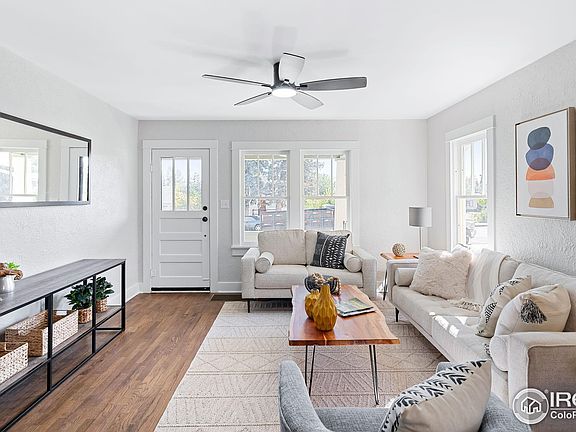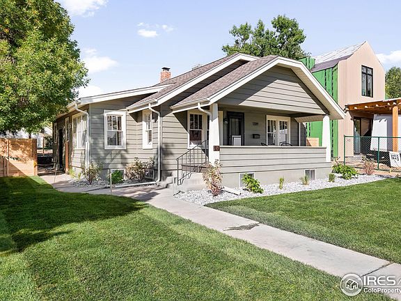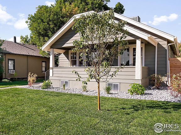 Tucked in the heart of Old Town Louisville, this historic bungalow fuses classic charm with modern amenities. Built in 1910, this home has been designated as a historic landmark by the City of Louisville. An inviting covered front porch overlooks a grassy front lawn. Further inside, a sun-filled layout unfolds with beautiful hardwood flooring and timeless arched doorways. A spacious living area is bathed in brightness from large windows. The dining area extends into an updated kitchen boasting stainless steel appliances, light wood cabinetry and a farmhouse sink. Enjoy quiet work-from-home days in a bright office lined with wide windows. The primary suite features a serene 3/4 bath and a walk-in closet with built-in storage and a stackable washer and dryer set. Two additional bedrooms share an updated full bath. Downstairs, an unfinished basement offers the potential for personalization. Revel in outdoor relaxation in a large, private backyard.