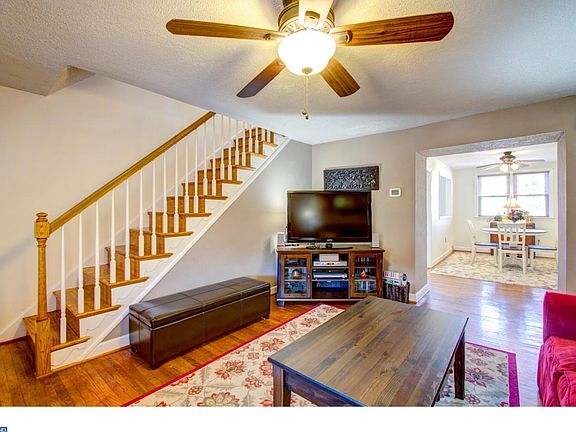 Updated 2 bedroom with 2 full bathrooms on the upper floor...a rare find in Elsmere Gardens! Enter the property onto a fenced brick patio with a lamppost and freshly painted stairs. Once inside, you'll notice beautiful hardwood floors throughout, tasteful colors, and spacious room sizes. The bright, white kitchen has neutral tile, a brand new gas stove, excellent counter space, and a window cut-out looking into the Dining Room. The large main bedroom with crown molding, chair rail, and two tone paint has it's own private full bathroom with tile floors. The second bedroom is also very spacious with two closets serviced by an updated hall bath and skylight. The roof was completely re-done in 2014 and the high-efficiency forced air HVAC systems were completely re-don in 2011. Replacement windows throughout. Dry, walkout basement has plenty of storage and leads to a rear driveway with parking for 2 cars. One of the nicest townhouses in Elsmere Gardens!