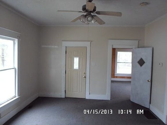 Spacious home with two bedrooms, one bath, large kitchen and living rooms, has enclosed front and back porch, large privacy fenced backyard. Has unfinished basement, and there is an additional large room with no closet that could be used as another bedroo